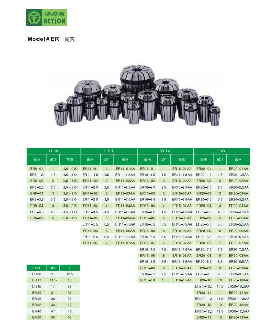 关键字:ER筒夹,霹雳马(ACTION)筒夹,ER止水筒夹,筒夹 dbzz厂家直销霹雳马(ACTION)ER筒夹、止水筒夹、型号齐全、台湾进口、品质保证、优质服务;ER8-1 ER8-2 ER8-3 ER8-4 ER11-1 ER11-2 ER11-3 ER11-4 ER11-5 ER11-6 ER11-7 ER16-8 ER16-9 ER16-10 ER20-1 ER20-2 ER20-3 ER20-4 ER20-5 ER20-6 ER20-7 ER20-8 ER20-9 ER20-10 |