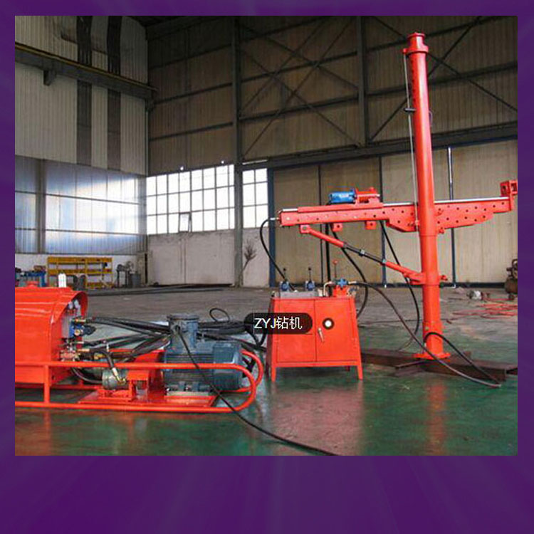 关键字:ZYJ-270/180架柱式液压回转钻机,架柱式液压回转钻机 dbzzZYJ-270/180架柱式液压回转钻机 ZYJ-270-180架柱式液压回转钻机,使用硬质合金、金刚石复合片钻头高效螺旋钻杆配煤钻头回转钻进,可适用于岩巷面和采掘面的超前瓦斯和水的探测钻孔,钻孔深度50至70米。该钻机的显著特点就是整机重量轻、操作简单、故障率低。自身配有支撑和固定导轨的支柱,采用顶天立地的顶紧方式,导轨和立柱之间采用了360度可调的连接盘,保证了钻机打孔角度的360度可调。 性能参数 主机 | ZYJ-270/180 | 圆钻杆(mm) | Φ42 | 高效螺旋钻杆(mm) | Φ69 | 额定转矩 (N.m) | 270 | 额定转速 (r/min) | >180 | 回转额定压力(MPa) | 14 | 进给额定压力(MPa) | 8 | 额定流量 (L/min) | 42/13 | 给进力 (kN) | 13 | 起拔力(kN) | 7 | 给进行程(mm) | 1330 | 主轴倾斜角度(。) | 0-360 | 噪声(dB) | 90 | 架柱高度(mm) | 2880-3580 | 主机重量(kg) | 210 | 马达 型号 | J2K-195 | 额定排量(mL/r) | 195 | 泵站 | 防爆电动机 | 型号 | YBK2-160M-4/B35 | 额定功率(KW) | 11 | 额定电压(v) | 380/660 | 油泵 | 型号 | 2CB-Fc31.5/10-FL | 额定排量(ML/r) | 31.5/10 | 额定压力(MPa) | 14 | 泵站重量(KG) | 350 | 泵站外形尺寸长X宽X高(mm) | 1800X500X800 |