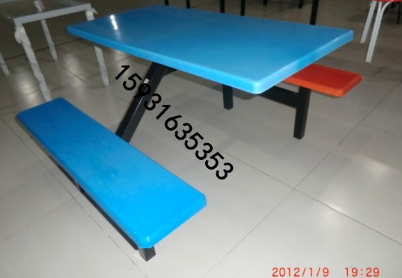 | 河北胜芳玻璃钢长条凳连体餐桌椅 |