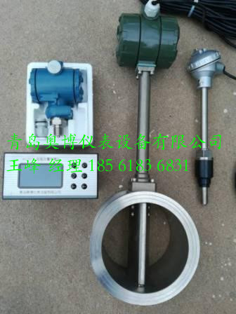 青岛奥博仪表设备有限公司 王峰经理 18561836831 涡街流量计分为分体式、一体式。 1、分体式包含:涡街流量传感器、显示仪、压力变送器、铂电阻。 2、一体式,单件,直接显示,适用于密度恒定的介质,没有温压补偿。