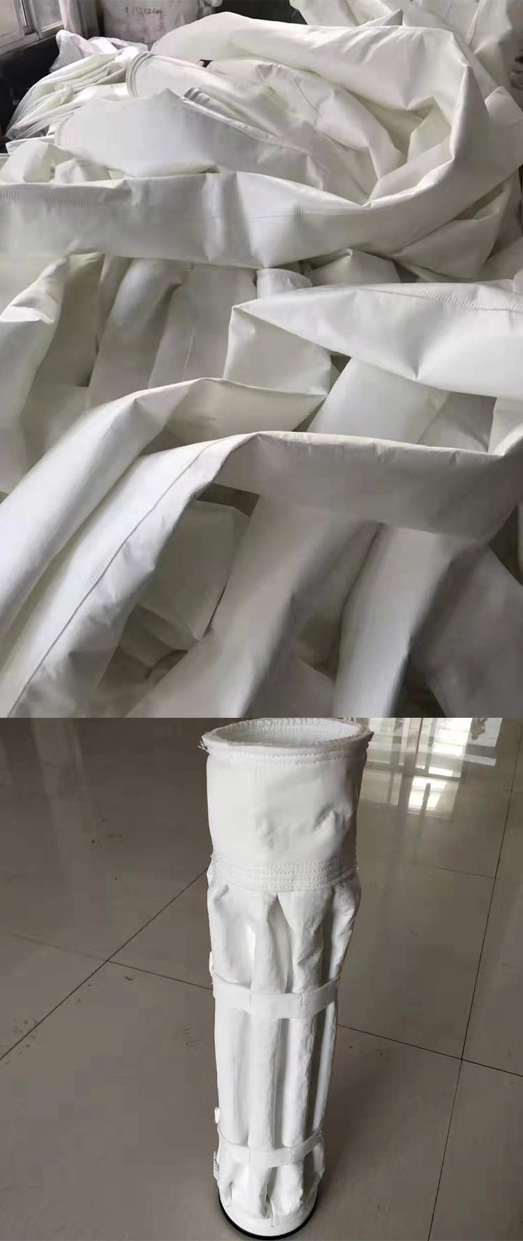 涤纶针刺过滤毡除尘布袋选用1-2.5D的涤纶_细旦丝,用高强低伸纱线织造增强基布,经针刺加固及后处理工艺而成;该产品除具有普通毡类滤布特有的孔隙度高、透气性好,耐酸、碱度适中的特点外,而且具有非常好的耐磨性,故它是毡类滤材中使用量大的一个品种;克重从350g/m2-800g/m2,厚度从1mm-4mm我公司均可生产;后处理方式有压光、烧毛、热定型、浸渍烘干、涂层等;具有尺寸稳定、易清灰、使用寿命长等特点。 滤料的表面光滑程度对滤料的动态运行阻力有非常大的影响;滤料的初阻力决定于滤料本身的透气度,而运行中的阻力则比初阻力大许多倍;运行阻力取决于滤材表面的光滑程度,清灰效果等。在采用相同压力、相同风量的气流进行清灰时,选用透气量大的织造物做滤袋时的清灰效果要好于选用透气量小的织造物;因此,在保证滤料达到较高的过滤精度情况下,如何提高滤料的透气度及提高表面光滑程度,减少粉尘附着,降低运行阻力是滤料生产厂应研究的课题;河北卓河环保生产表面树脂化光滑整理针刺过滤毡,其透气度比普通压光整理滤料高出50%以上,而表面光滑程度比经压光整理更加平整光滑。 涤纶防静电针刺过滤毡、滤袋产品主要用于化工,冶金,食品,制药,建材,矿山等行业。板框压滤机,带式过滤机,真空吸滤和烟除尘等固液分离,固气分离设备配套使用!工业粉尘在浓度达到 程度后如遇静电放电火花或外界点火等因素,同极易导致爆炸和火灾,如:面粉尘、化工性粉尘、煤粉尘等如遇静电放电都有爆炸的可能。在袋式除尘领域,如这些粉尘需用除尘布袋来收集,则要求制做除尘布袋的滤袋具有防静电性。河北卓河环保生产的涤纶防静电针刺过滤毡、滤袋具有生产普通针刺毡的工艺外,还在生产针刺毡的基布的经纱中入导电纤维纱或在化学纤维中混入导电纤维或导电材料,实现导电功能。 河北卓河环保设备有限公司http://www.huabohuanbao.com/products/bdxlcc.html