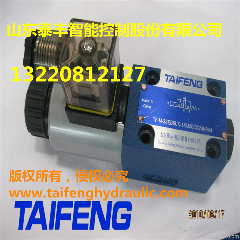 | 电磁球阀,电磁截止方向阀 概述 TF-M-SED6UK型电磁球阀是电磁截止方向阀,主要用于控制液体的通断和流动方向,也可以作为先导控制阀,以控制各种大通径的液压阀(电磁换向阀或二通插装阀),实现对打功率液压阀的先导控制。 通径06 最高工作压力(bar):350 最大流量(L/min):25 电磁球阀特点 1.以直动式电磁铁操作方向滑阀作为标准类型 2.安装面符合DIN24341 A型 3.ISO 4410和CETOP-RP121H 4.封闭油口为无泄漏式封闭 5.带可拆卸线圈的湿式直流或交流电磁铁 6.电磁铁可旋转90度 7.可以迅速而方面的更换电磁铁线圈而不引起液压系统漏油 8.可选的手动应急操作 通径06 最高工作压力(bar):350 最大流量(L/min):25