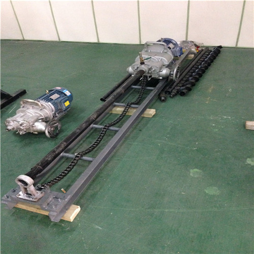 关键字:岩石电钻 dbzz 产品介绍: 探水钻机, 岩石电钻厂家 ,5.5KW岩石电钻,岩石电钻的使用,岩石电钻的用途。KHYD系列矿用岩石电钻(以下简称岩石电钻)也叫探水钻机,或叫做探水钻,具有结构合理、移动方便、易操作、安全可靠等特点。适用于有瓦斯(甲烷)或煤尘炸危险的矿井实施钻孔及探水、探瓦斯等作用,也可用于其他矿山或岩土工程钻孔用。 KHYD系列钻机过载能力强,可减少部分卡钻或钻透,夹矸成孔率高。KHYD系列钻机需有钻架配合,可水平向前或倾斜向上等任意方向钻孔。为了延长钻头的使用寿命及改善操作者的劳动条件,采用水排fen即湿式钻孔,在钻孔作业中,只需操纵手轮,电钻就可自行推进和快速退架。