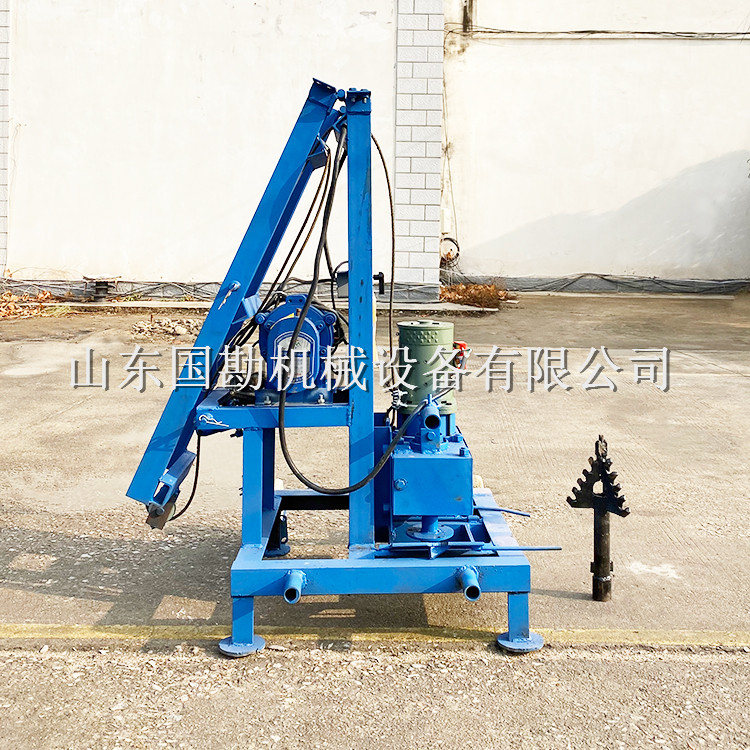 关键字:折叠式电动打井机,便捷式,农用水井钻机,多规格,钻杆,钻头 dbzz 一、产品介绍: 山东国勘生产的小型打井设备、履带式打井机、拖车式打井机,适用各种不同地形,该机器使用方便,操作简单,成孔速度快,每小时10米左右,噪音小,操作极为简便,单人即可操作,机械自卸钻杆,以打100米的一眼井为例,钻杆拆卸平均时耗10分钟左右,而且移动方便,完成打井作业后,单人操作即可完成移机工作。 小型电动打井机广泛应用于家庭打井,工厂打井,取生活用水,农田灌溉水井,安装水空调,太阳能热水器,工地打桩等。电源:单相220V电机,可调速,可正反转。家用照明电就可以。