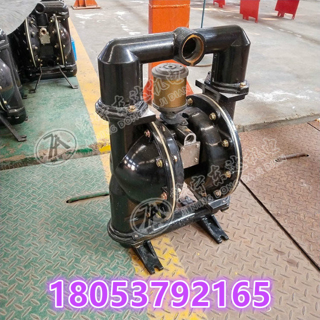 关键字:气动隔膜泵,2寸隔膜泵,铝合金风泵,隔膜泵,风动泵,隔膜泵厂家 dbzz厂家联系方式18053792165,期待您的来电 隔膜泵 铸铝隔膜泵 气动隔膜泵 BQG350/0.2风动隔膜泵 BQG350/0.2气动隔膜泵既能抽送流动的液体,又能输送一些不易流动的介质,具有自吸泵、潜水泵、屏蔽泵、泥浆泵和杂质泵等输送机械的许多优点。 BQG气动隔膜泵还具有操作简单,安全可靠,耐腐蚀性,经久耐用,具自吸性,空转无损,多种材料,用途广泛等显著特点。 BQG350气动隔膜泵产品优势 1、不需灌引水.吸程高达5m.扬程达70m.出口压力≥6bar。 2、流动宽敞,通过性能好.允许通过颗粒直径达10mm。抽送泥浆、杂质日寸,对泵磨损甚微; 3、扬程、流量可通过气阀开度实现无级调节(气压调节在1—7 bar之间): 4、该泵无旋转部件,没有轴封,隔膜等抽送的介质与泵的运动部件、工件介质完全隔开,所输送的介质不会向外泄漏。所以抽送有毒、易发挥或腐蚀性介质时,不会造成环境污染和危害人身安全; 5、不必用电。在易燃、易爆场所使用安全可靠; 6、可以浸没在介质中工作: 7、使用方便、工作可靠、开停只需简单地打开和关闭气体阀门.即使由于意外情况而长时间无介质运行或突然停机泵也不会因此而损坏.一旦超负荷,泵会自地动停机,具有自我保护性能,当负荷恢复正常后,又能自动启动运行; 8、结构简单、易损件少,该泵结构简单,安装、维修方便,泵输送的介质不会接触到配气阀,联杆等运动部件,不象其他类型的泵因转子、活塞、齿轮、叶片等部件的磨损而使性能逐步下降: 9、可输送较粘的液体: 10、本泵无须用油润滑,即使空转.对泵也无任何影响,