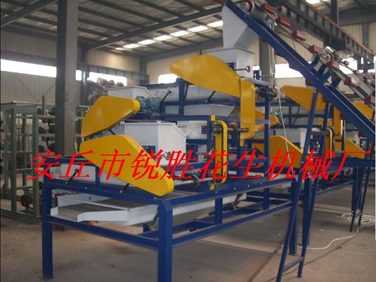 该机主要用于剥除各种规格核硬质外壳。由提升机送料,一二三级自动筛选破壳,各级出料筛体和振动筛组成,可同时剥除三级不同规格的杏核、桃核、榛子等硬质外壳,设计合理破碎率低,是目前最理想的核类加工设备。也可设计小型单级脱壳。 使用说明: 1、本机在使用前,首先根据杏核的大小调整各级加工辊的间隙,根据杏核的扁向尺寸的大小,大体分出三个级别,按杏核扁向尺寸由大到小,依次调整一、二、三级加工辊的间隙尺寸,压辊间隙应比杏核偏向尺寸小1-1.5mm。 2、间隙调整好后可以通电开机,开机顺序依次为:总振动筛→三级加工→二级加工→一级加工→提升机→投料。 3、在大批加工时,先投入少量杏核,检查各级压辊的间隙是否合适,如果加工杏仁的破碎比较严重,请再次调整间隙直到达到理想效果。 4、加工结束后,须按以下顺序依次停机,提升机→一级加工→二级加工→三级加工→总振动筛。