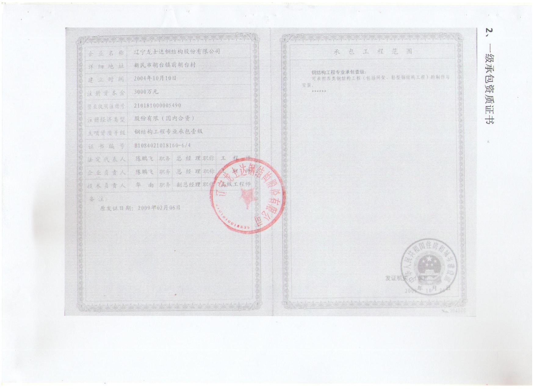 | 企业名称:辽宁龙士达钢结构股份有限公司 |